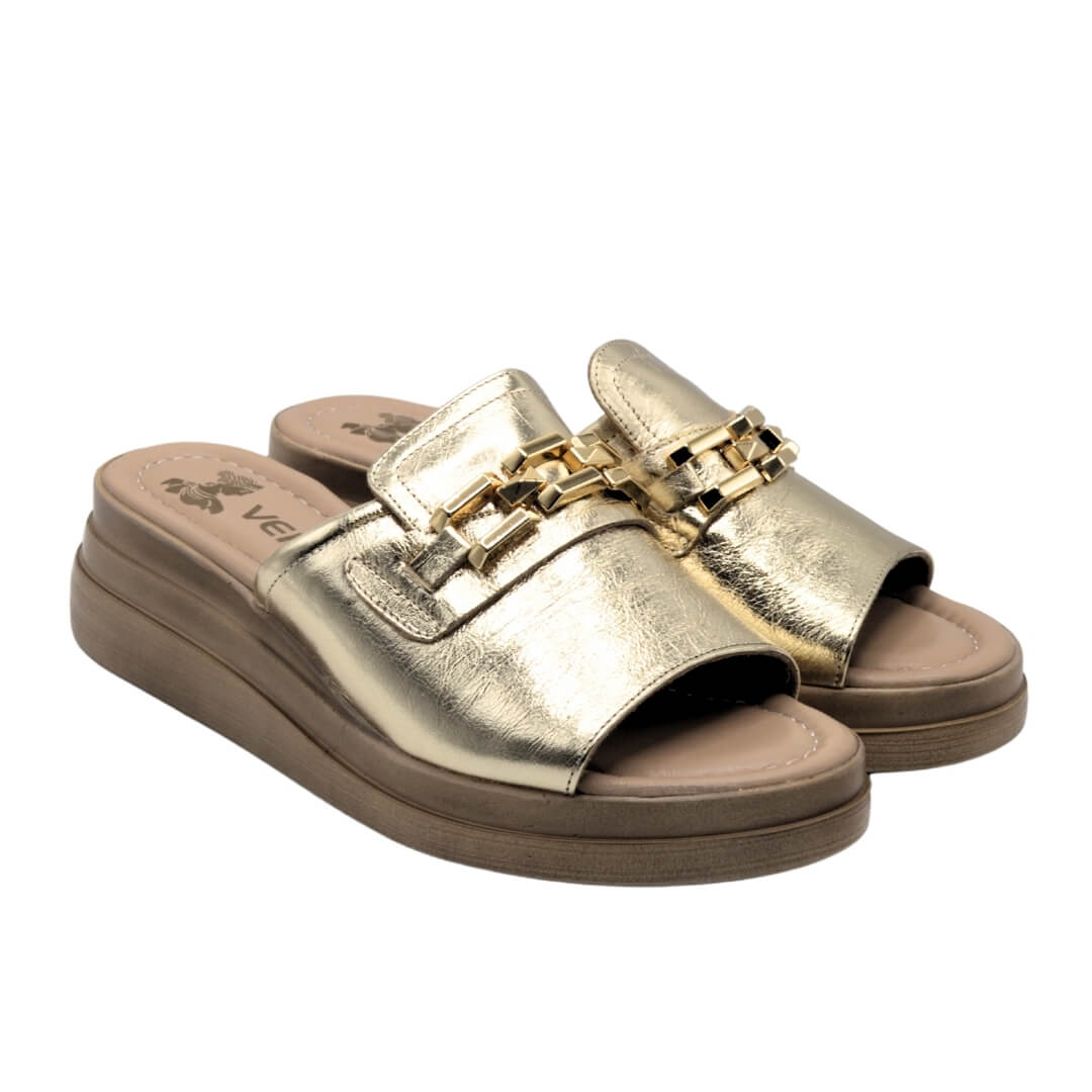 Venüs Deri Kadın Gold Detaylı Terlik Altın 2409915Y