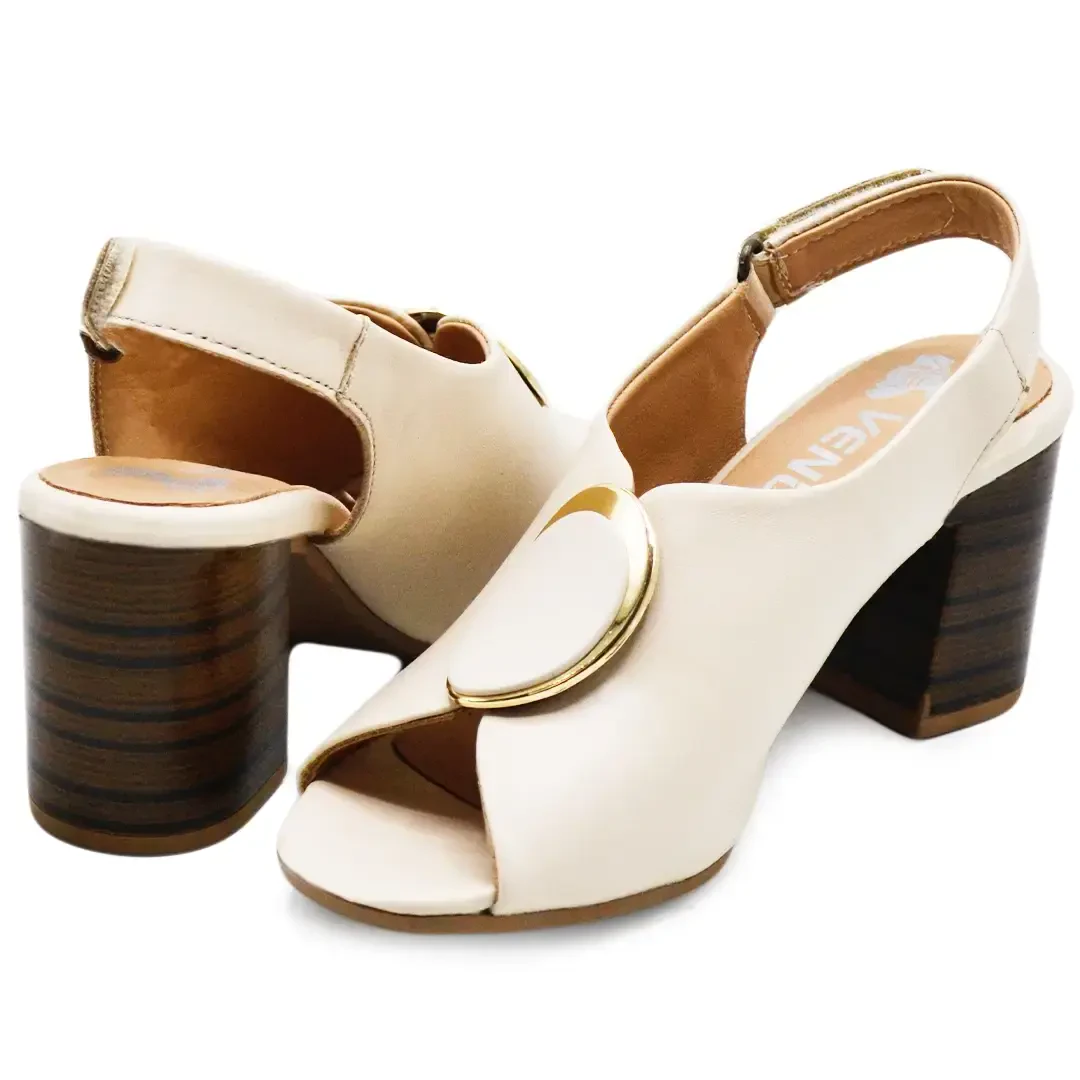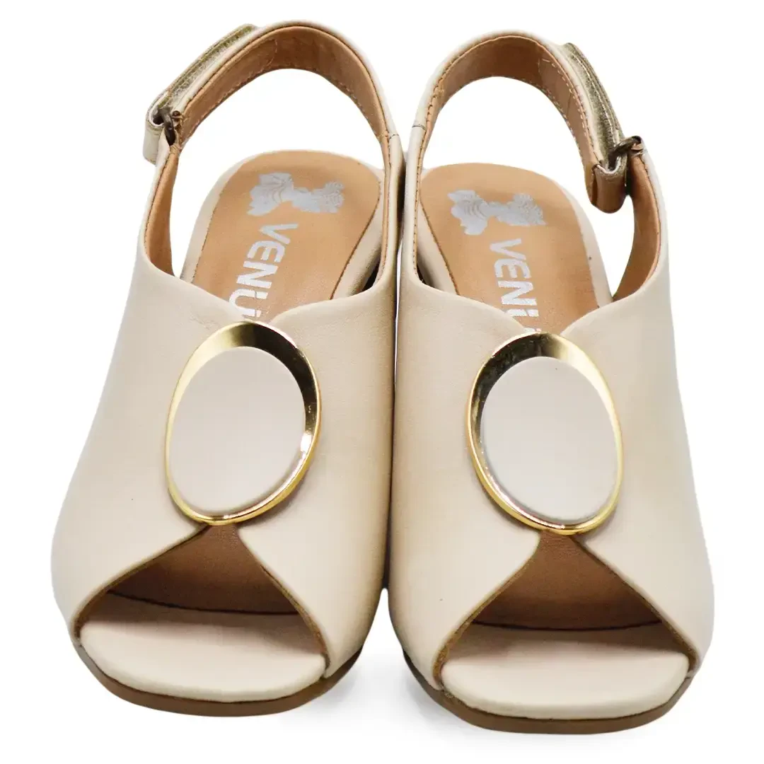 Venüs Deri Kadın Topuklu Sandalet Bej 2108518Y