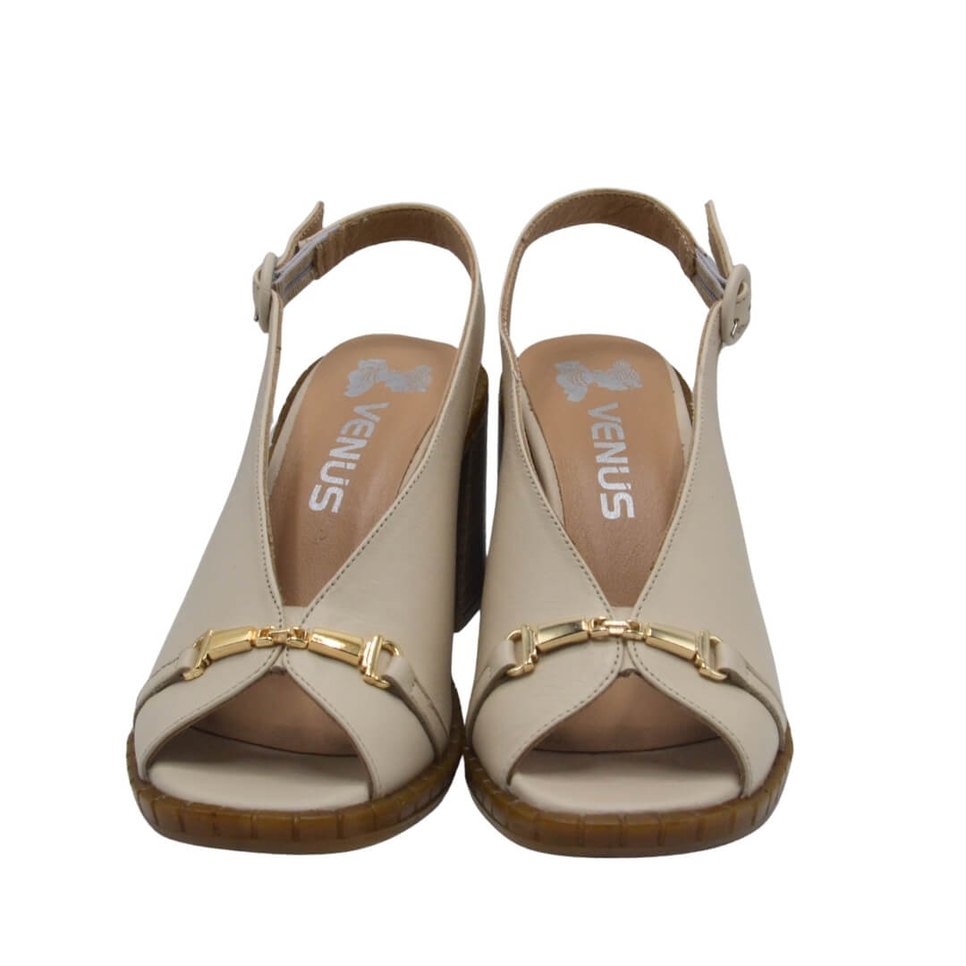 Venüs Deri Kadın Topuklu Sandalet Bej 2511902Y