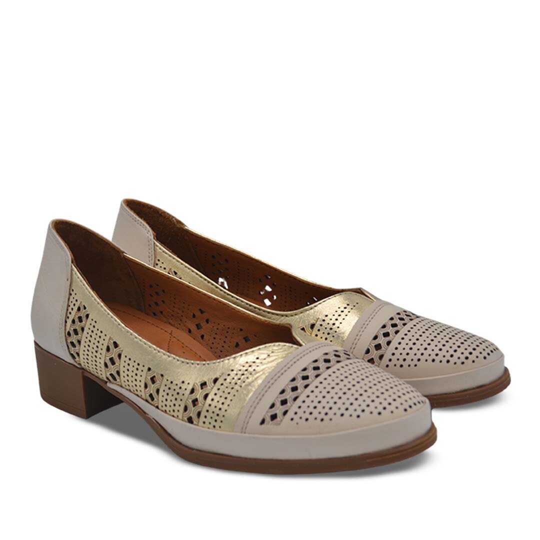 Venüs Deri Kadın Topuklu Ayakkabı Bej-Altın 1709280Y BEJ Ç - ALTIN L