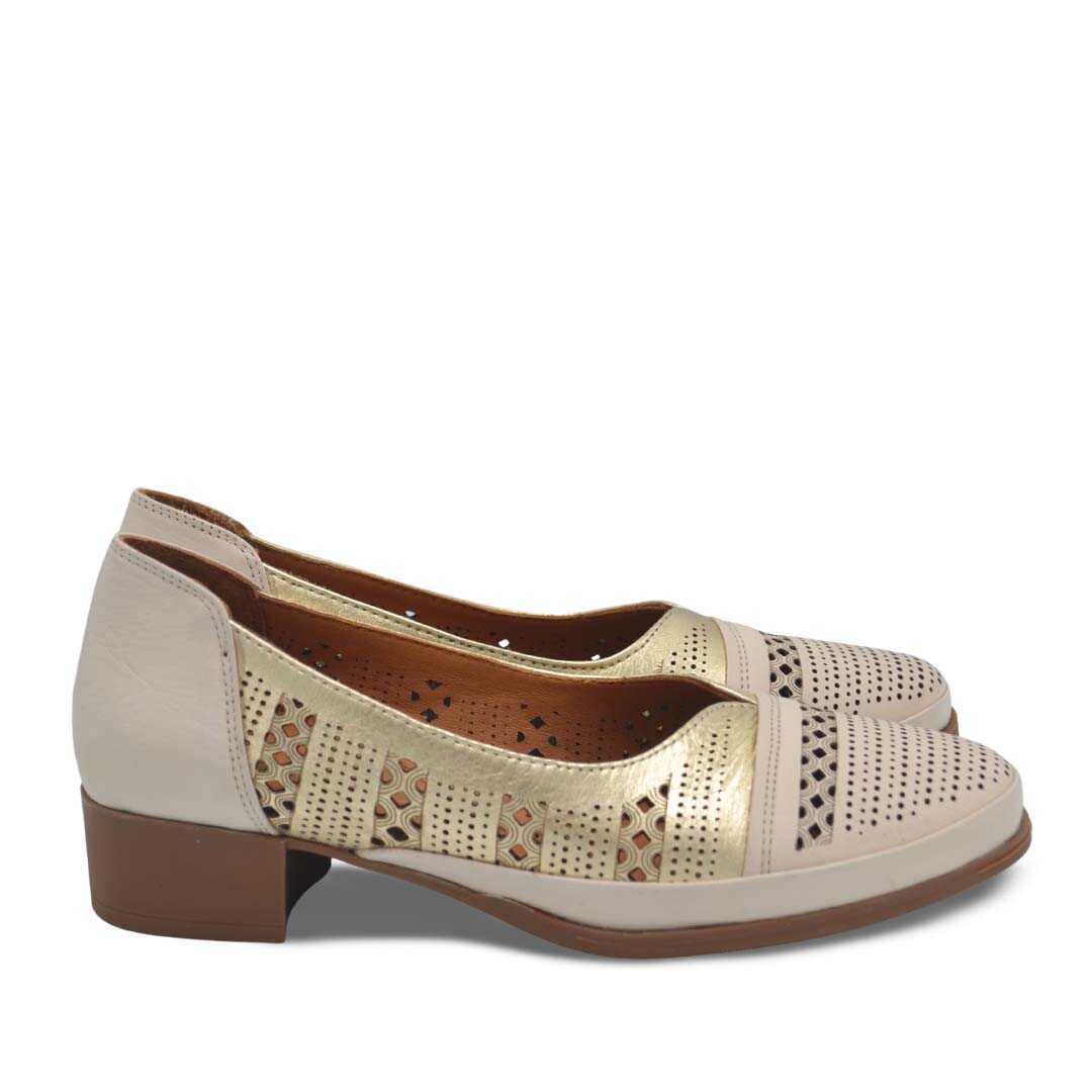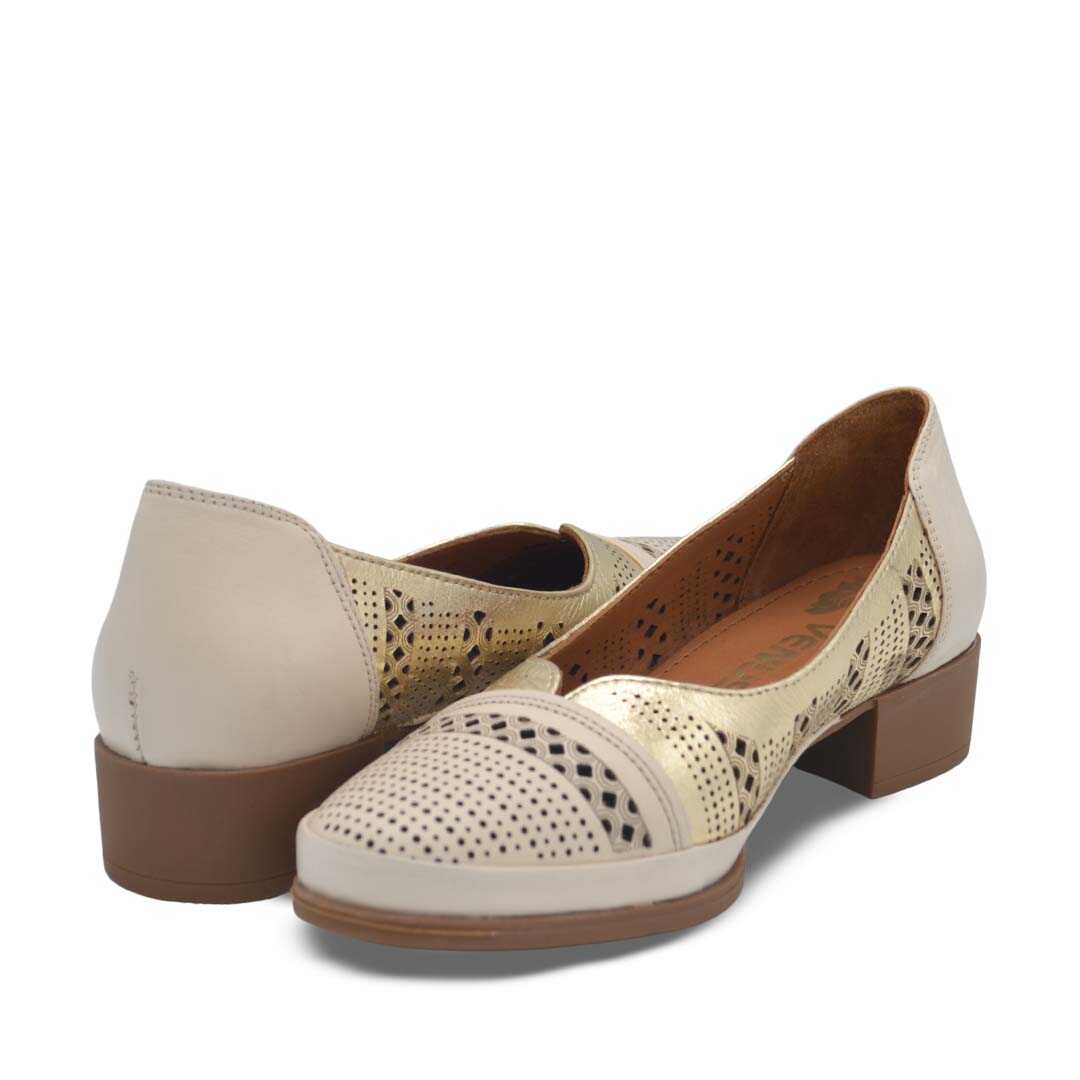 Venüs Deri Kadın Topuklu Ayakkabı Bej-Altın 1709280Y