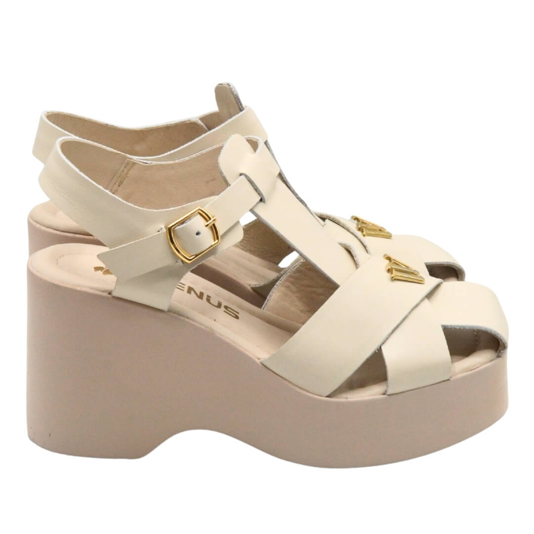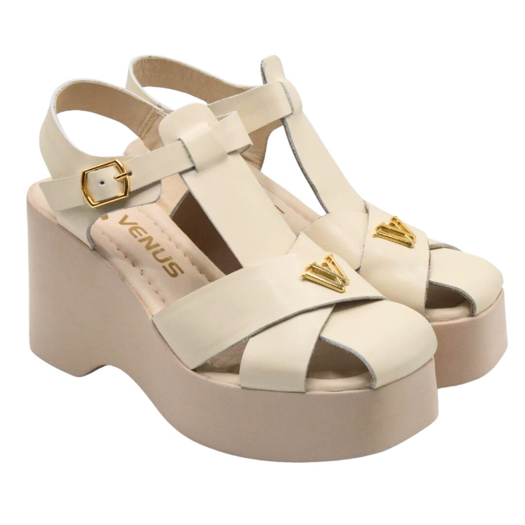 Venüs Deri Kadın Dolgu Topuklu Sandalet Bej 2311530Y