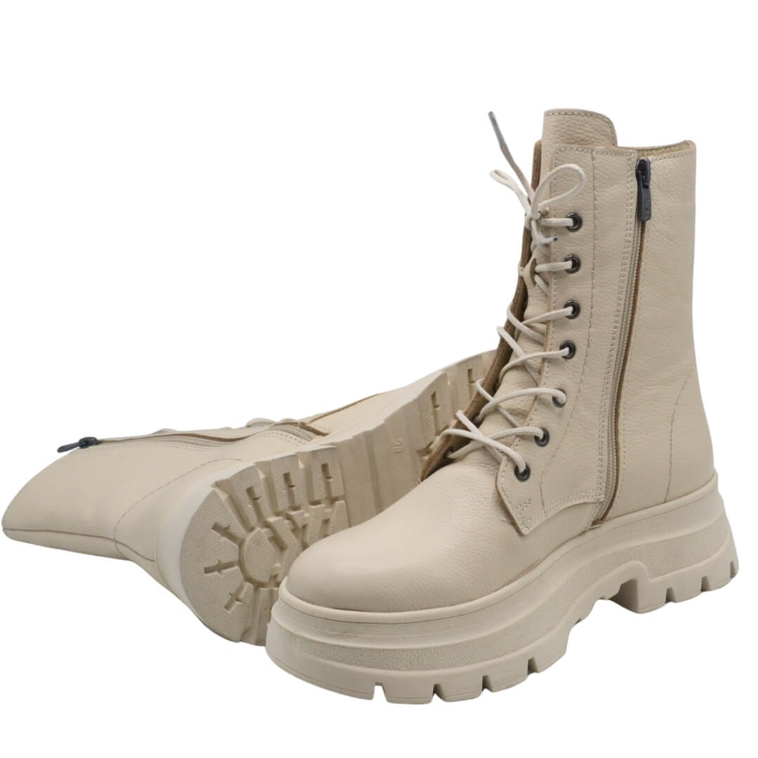 Bej renginin getirdiği zarif ve sade duruş, botun her türlü kıyafetle kolayca uyum sağlamasını sağlar.