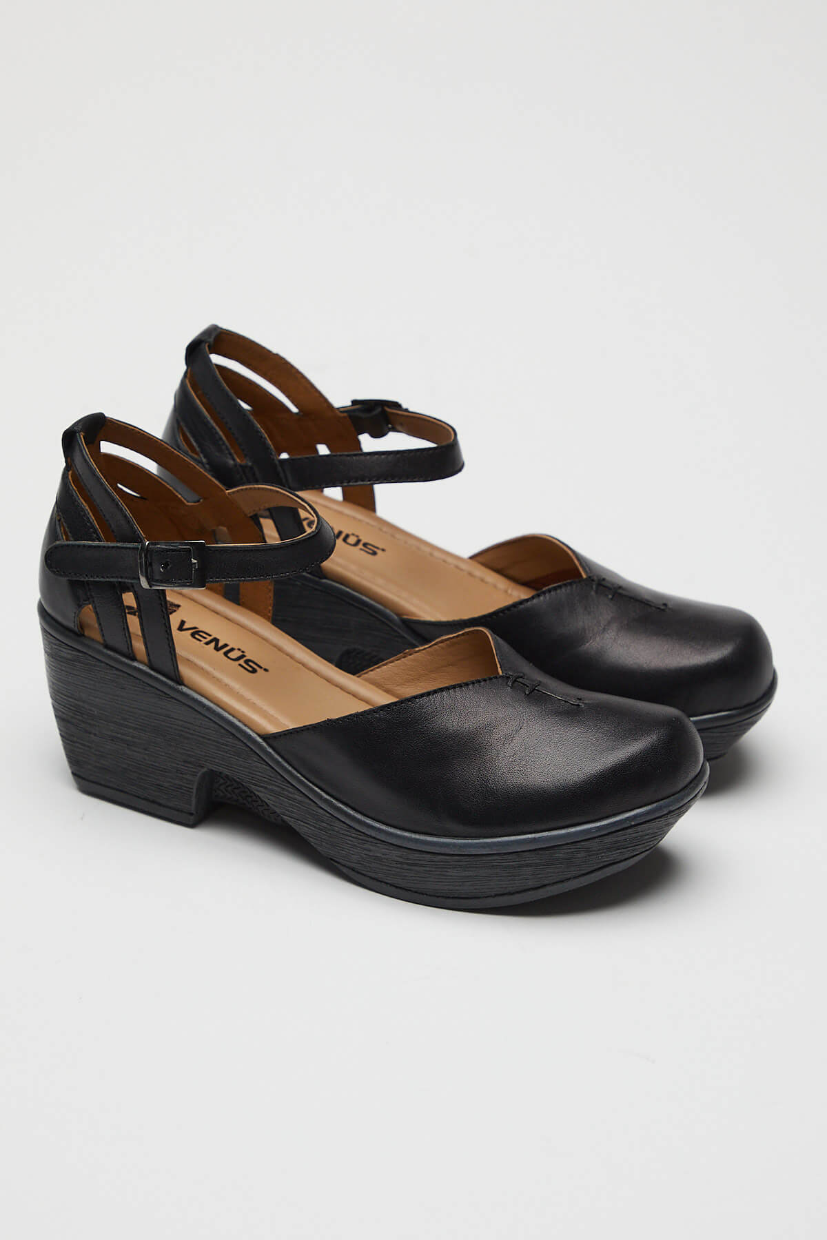 Venüs Deri Kadın Apartman Topuk Sandalet Siyah 1912502Y