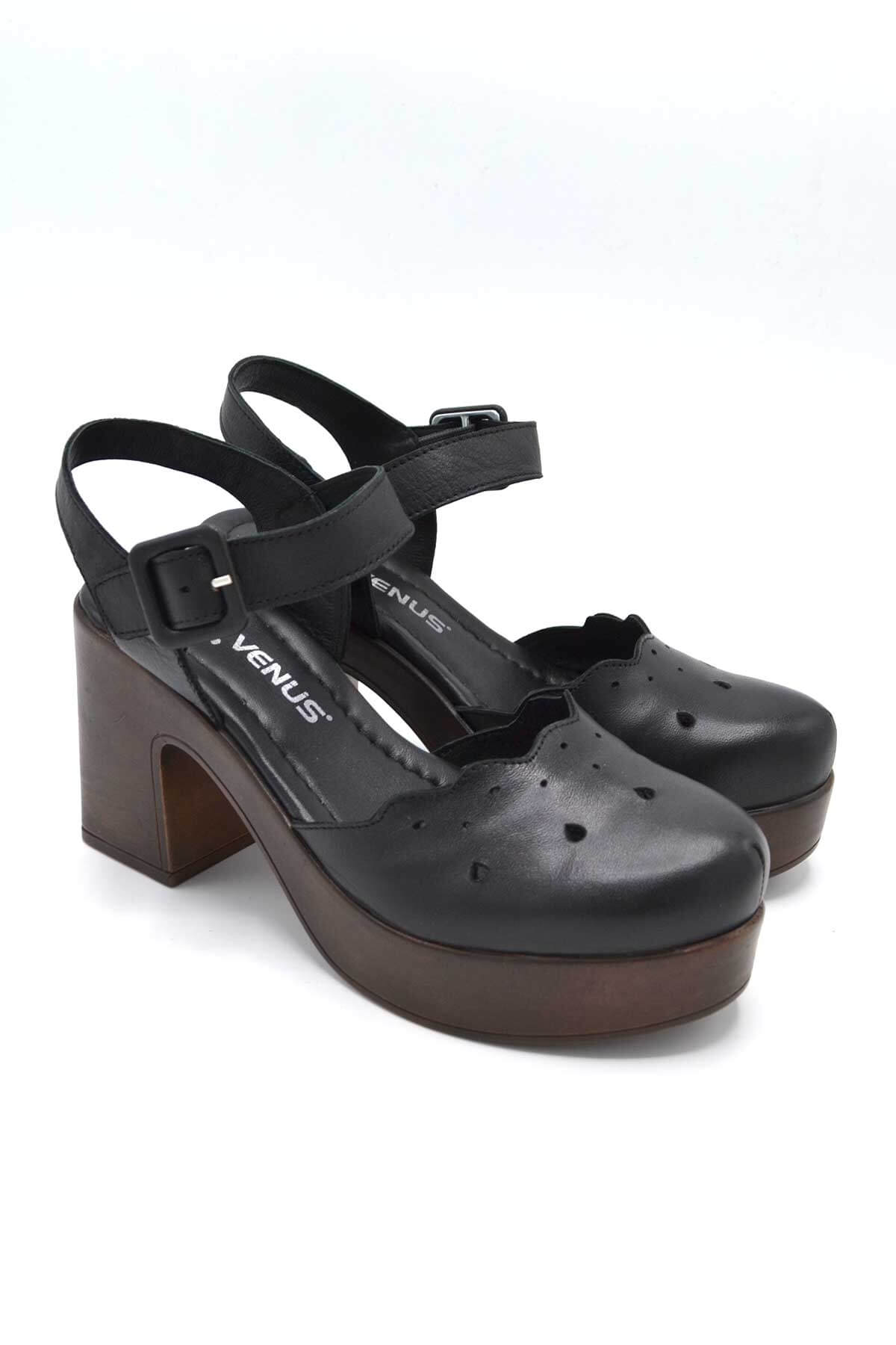 Venüs Deri Kadın Topuklu Sandalet Siyah 2217001Y