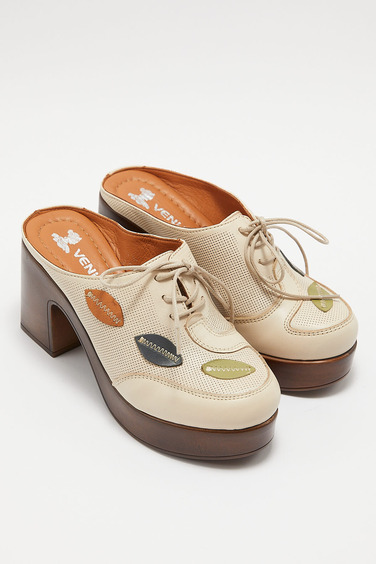 Venüs Deri Kadın Topuklu Terlik Bej-S.Yeşil 2217003Y