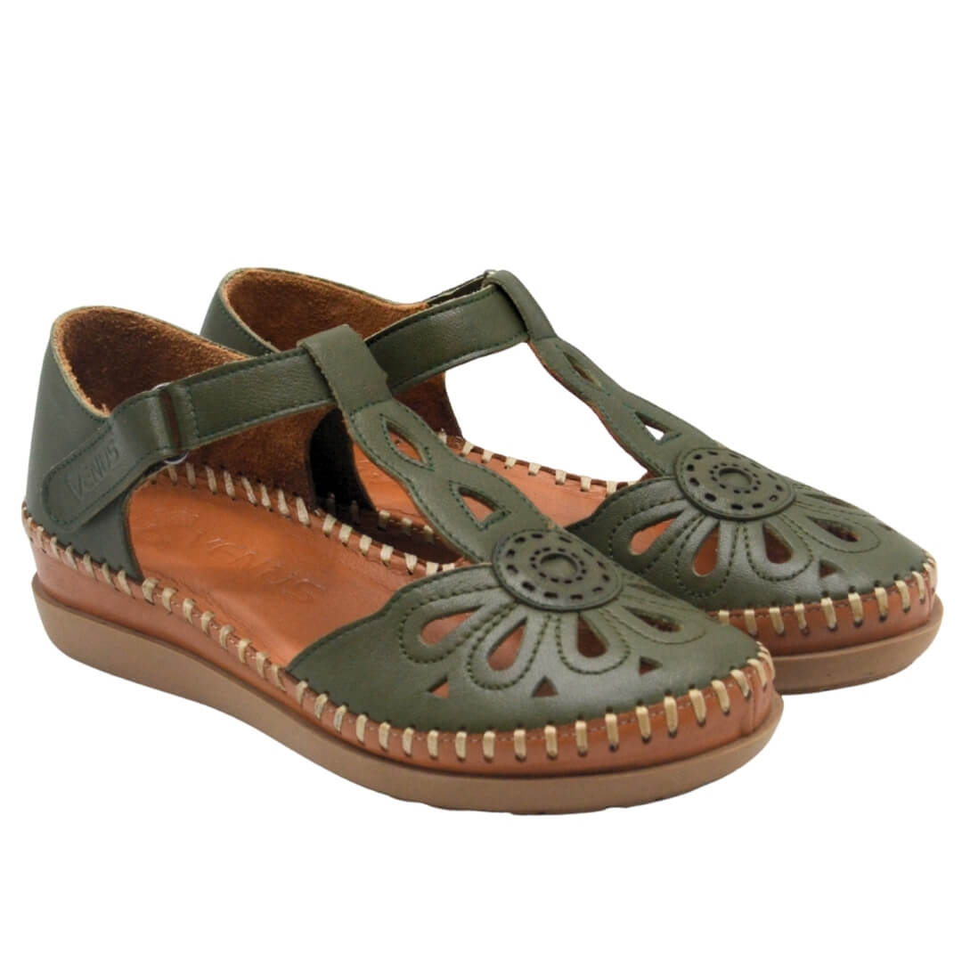 Venüs Deri Kadın Dolgu Topuklu Sandalet Yeşil 18793505Y