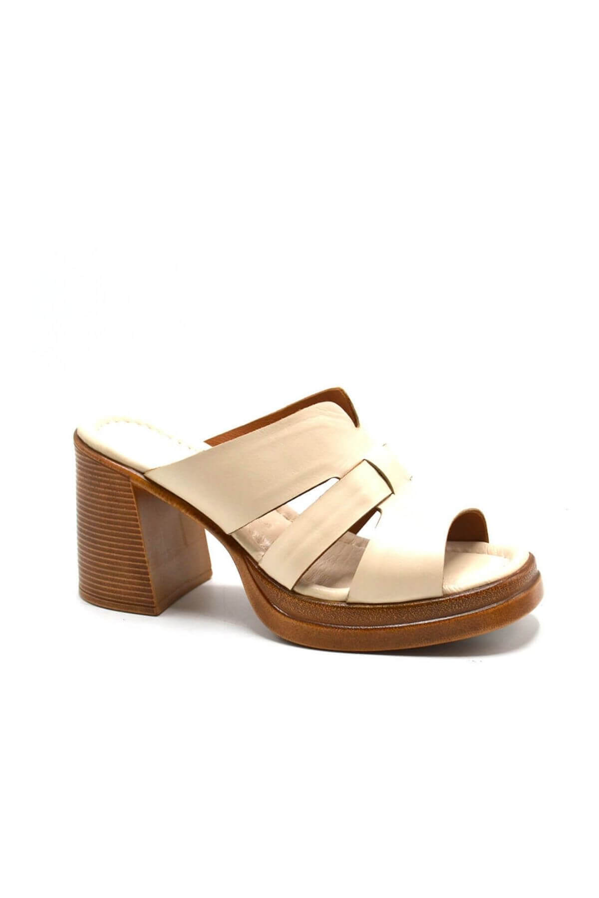 Venüs Deri Kadın Topuklu Terlik Bej 2413403Y