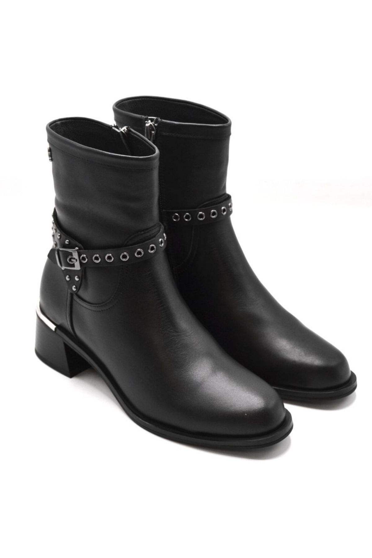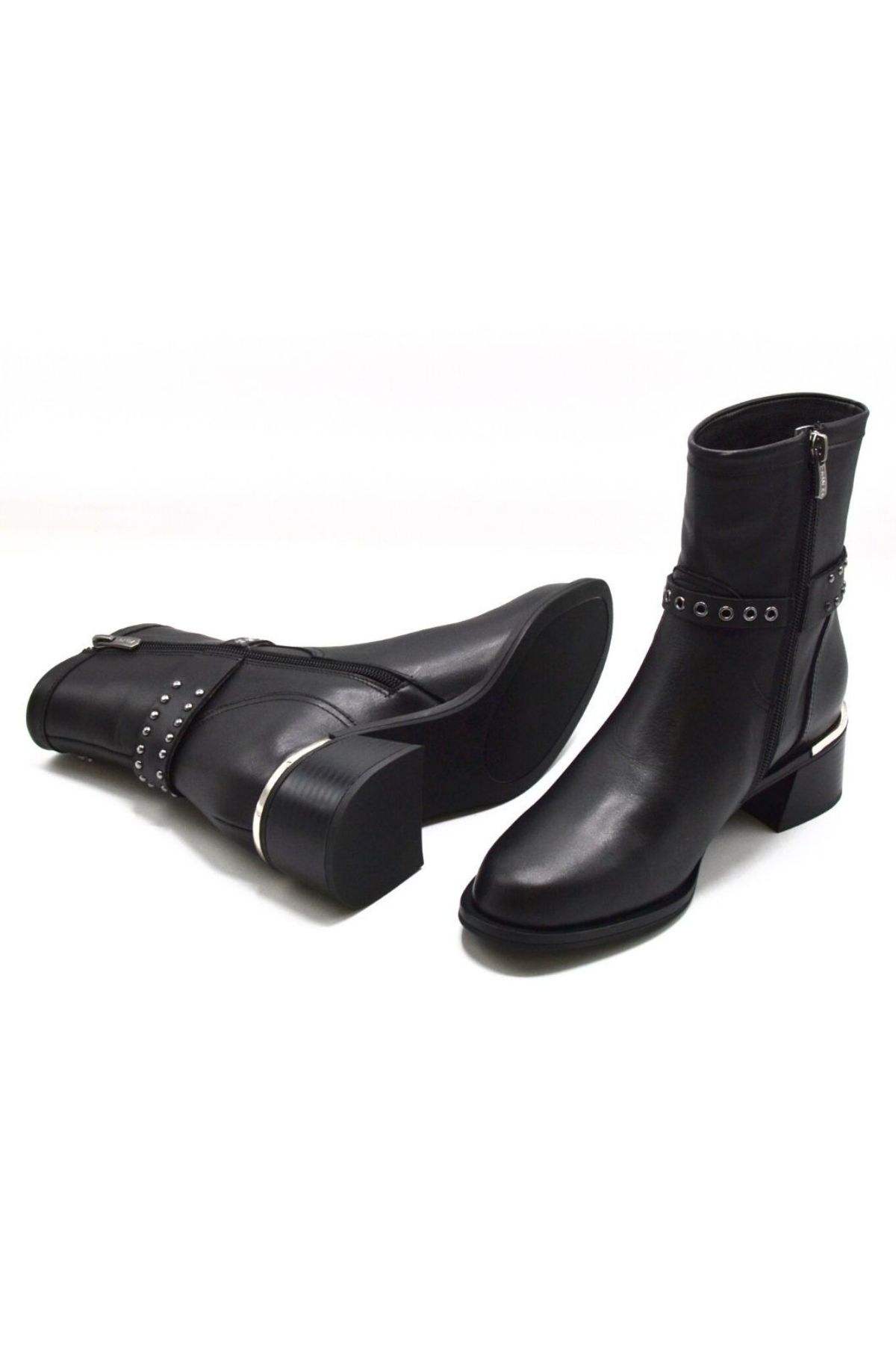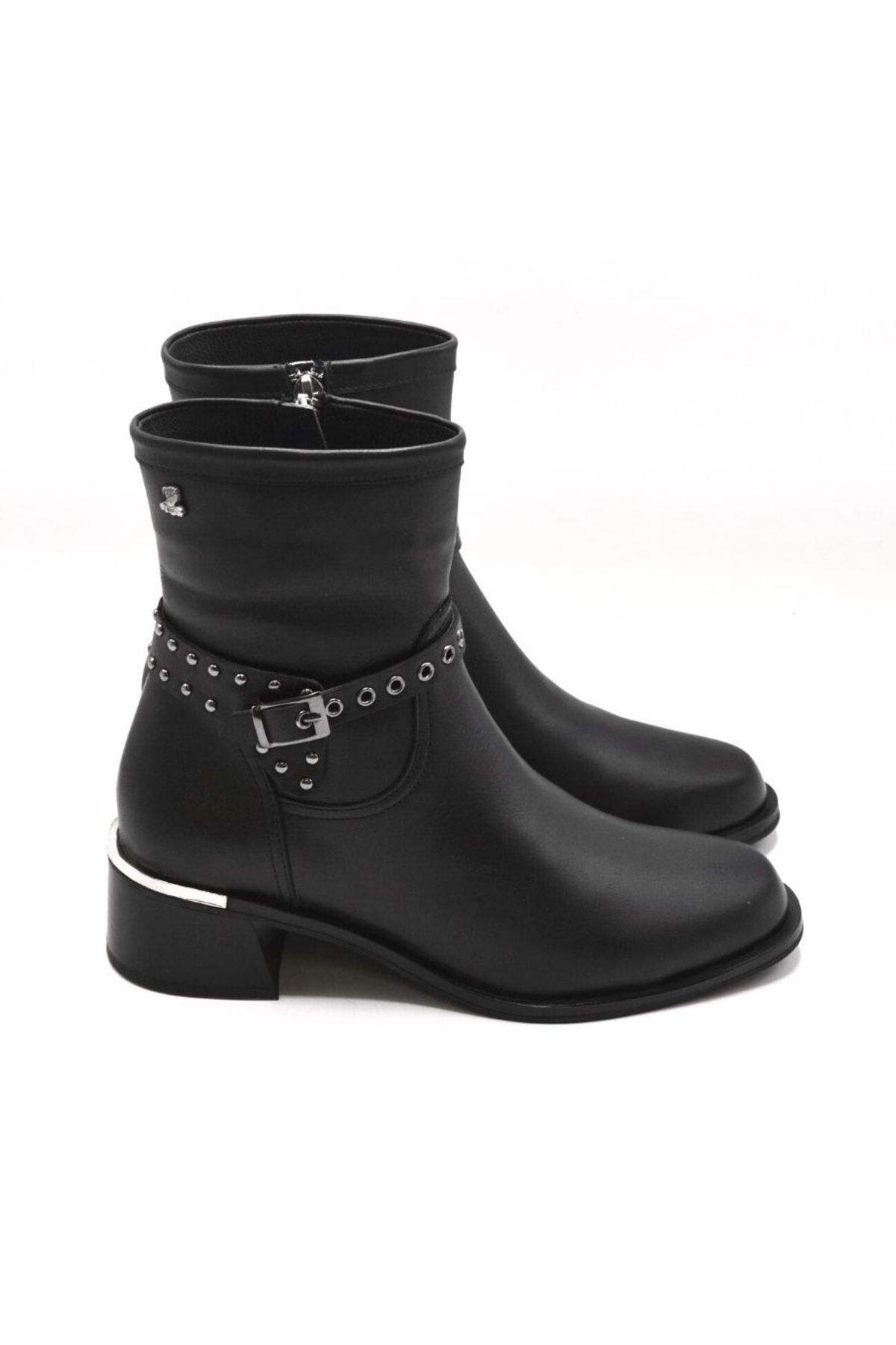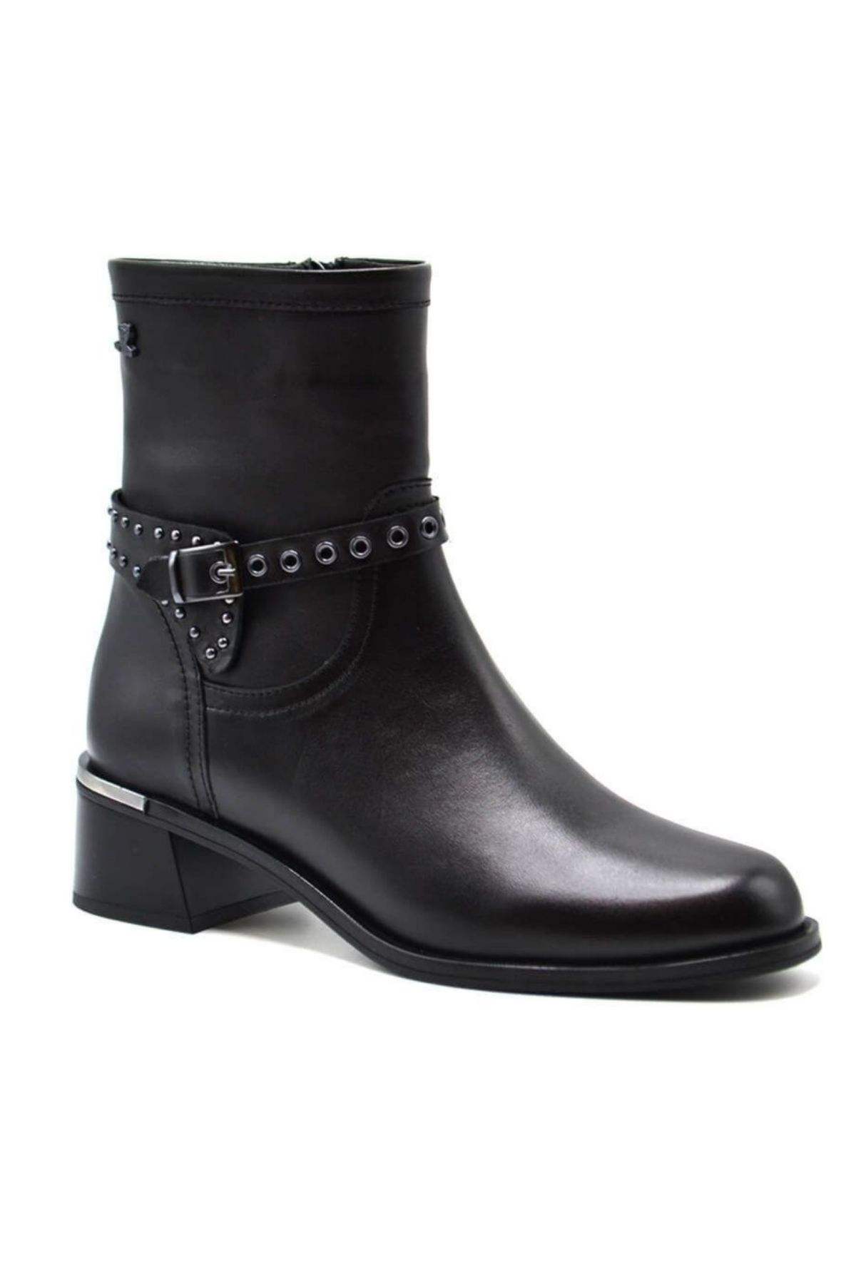 Kemerli toka aksesuarı ve Metal topuk detaylı botumuzla hem şık, hem de gün boyu rahat olacaksınız.