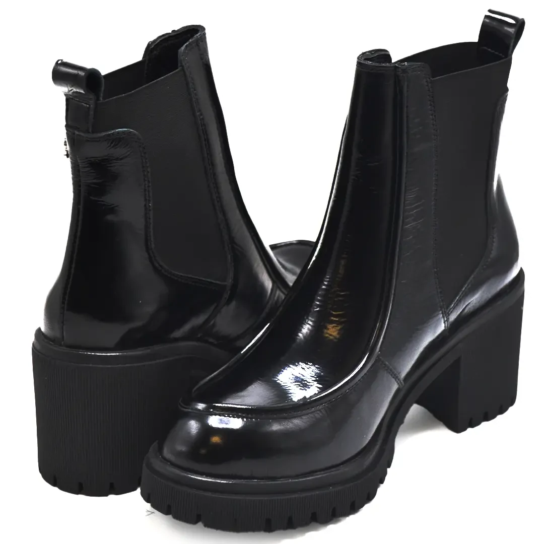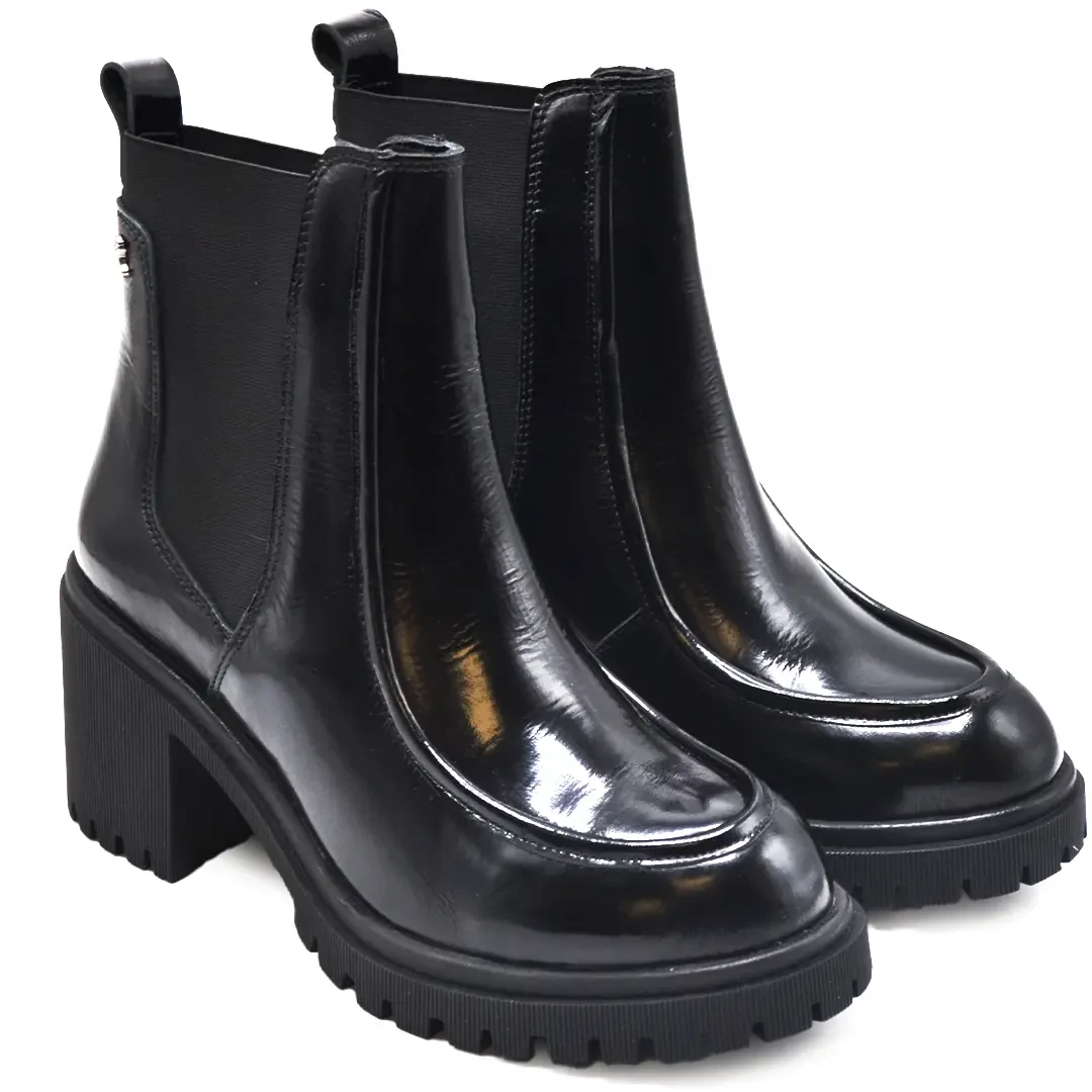 Siyah maskülen hakiki deri 2451510K Venüs kadın bot, cesur ve modern tarzınızı yansıtmak için mükemmel bir seçim.