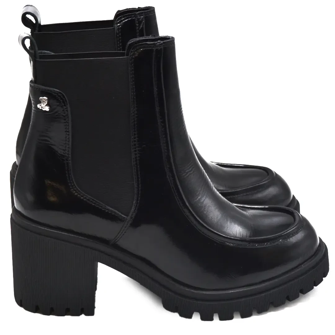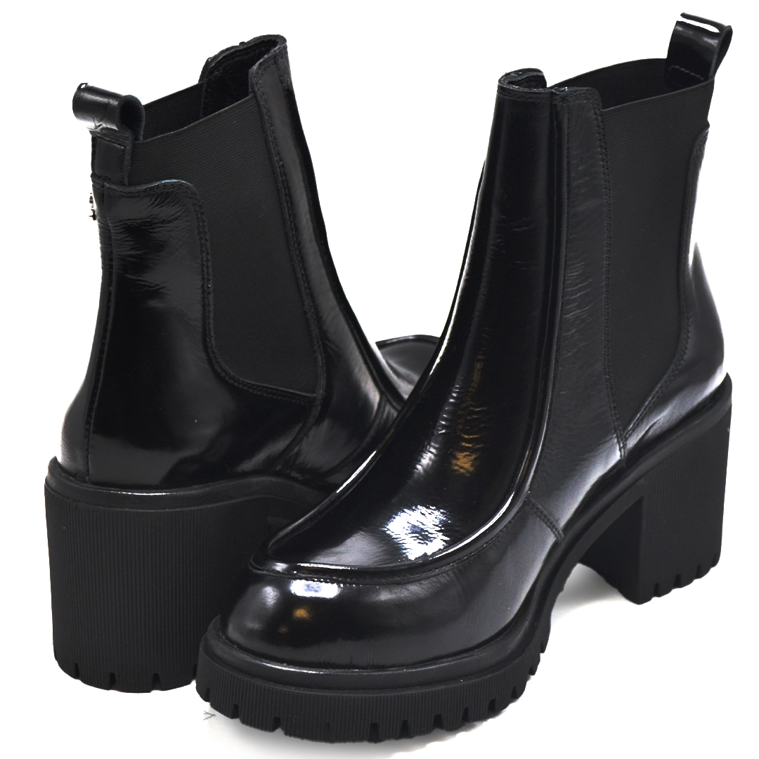 Venüs Deri Kadın Rugan Topuklu Bot Siyah 2451510K