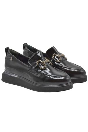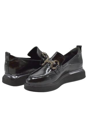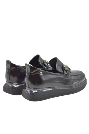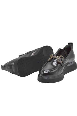 Venüs 2451401K kadın siyah rugan kalın tabanlı loafer ayakkabı, şıklığı ve rahatlığı bir araya getirerek her adımda konfor sunar.