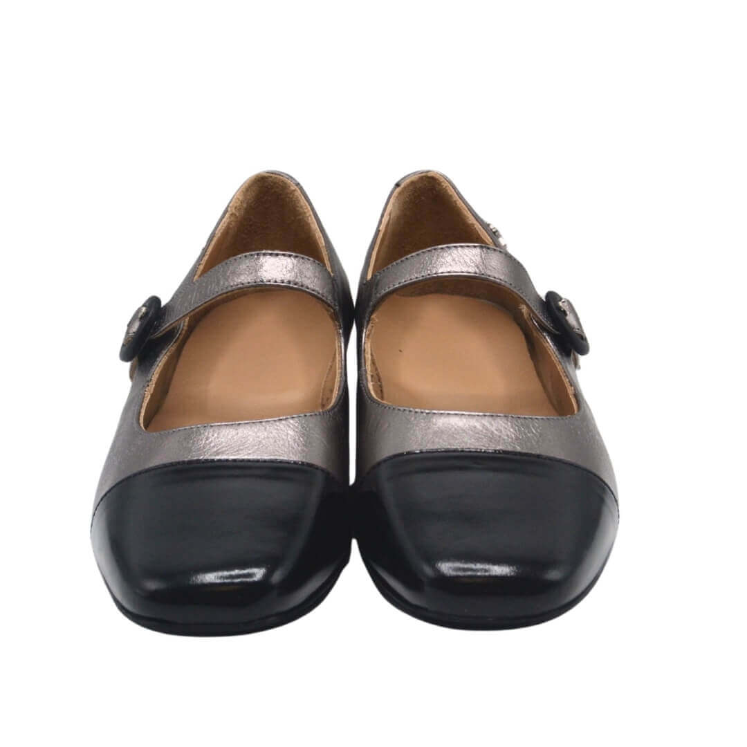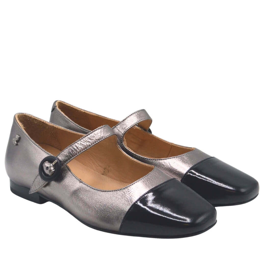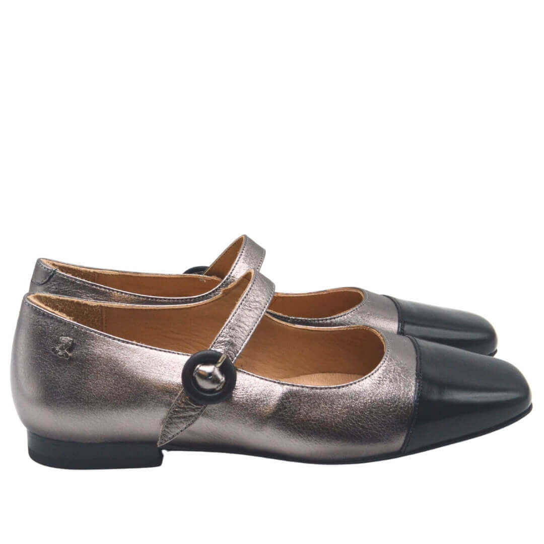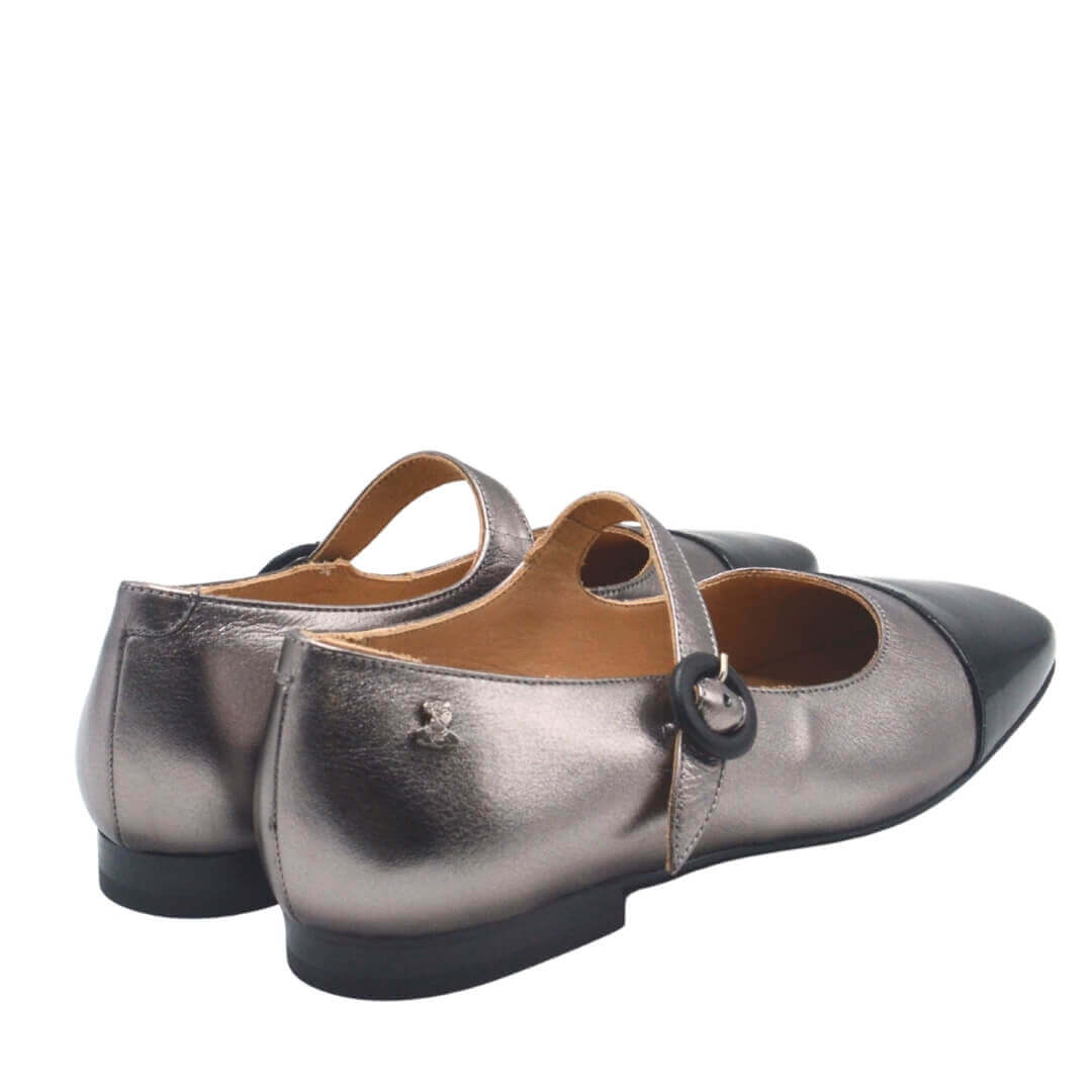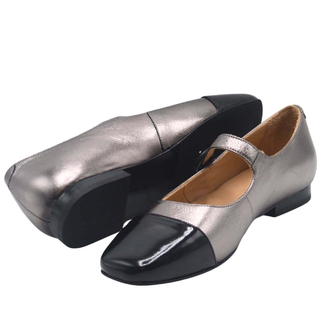 2511104 kodlu siyah-platin renk hakiki deri babet, kemerli tokalı tasarımı ile sofistike bir duruş sunarken, esnek yapısı ile gün boyu rahatlık sağlar.