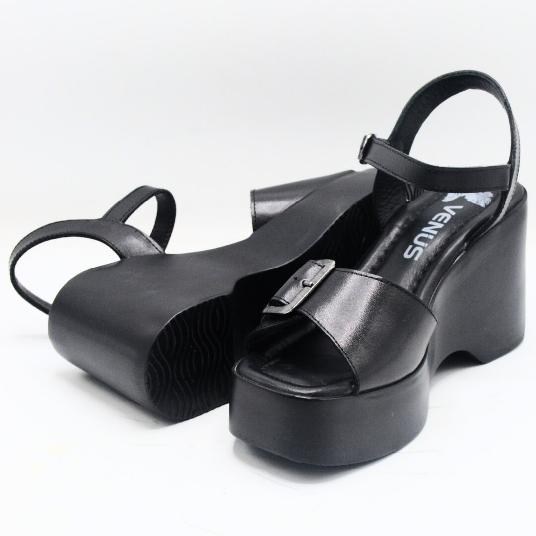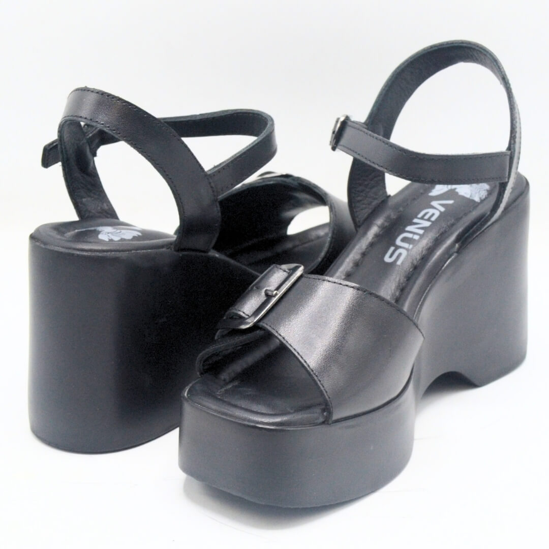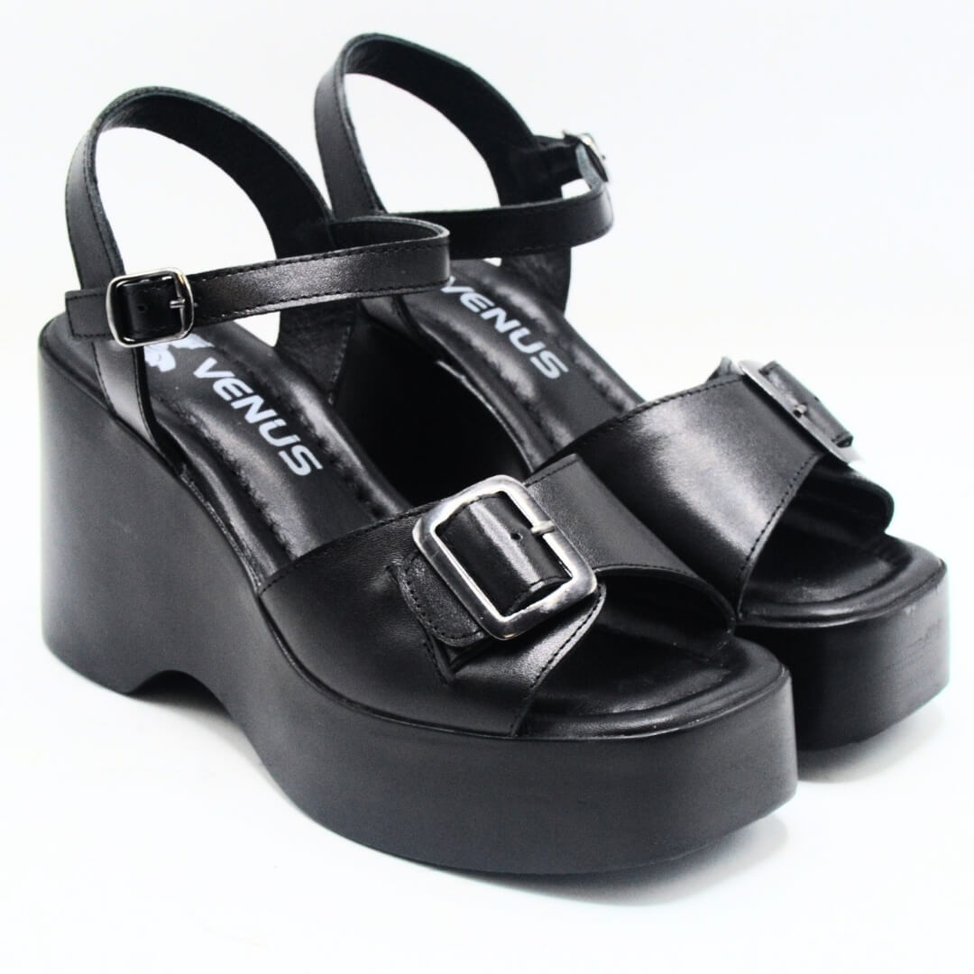 Venüs Deri Kadın Dolgu Topuklu Sandalet Siyah 2311532Y