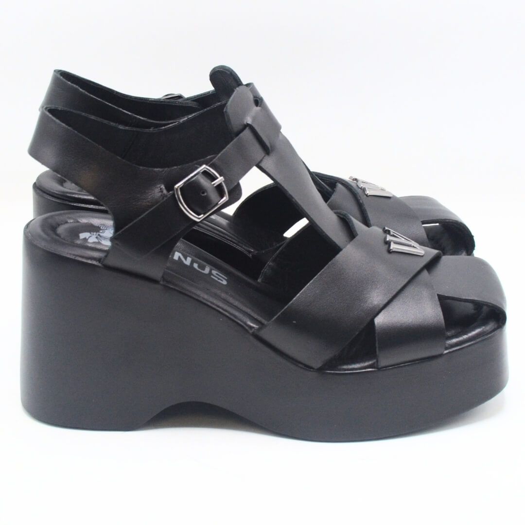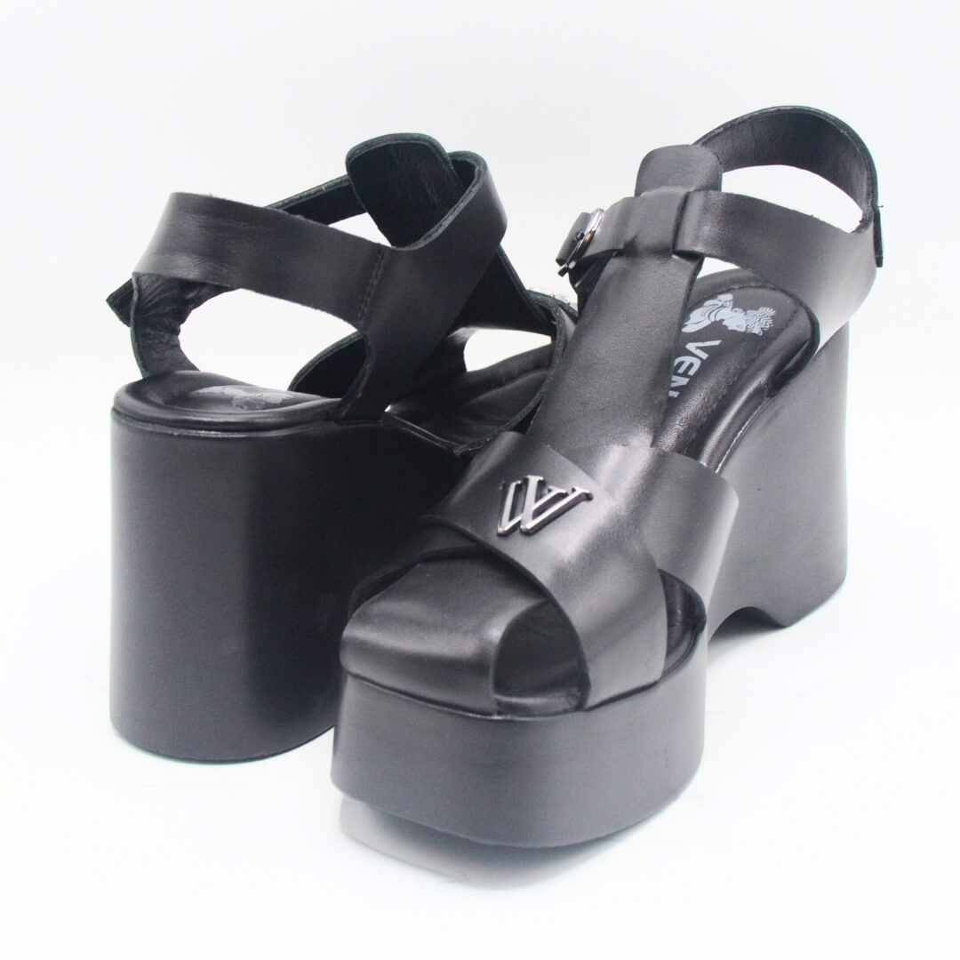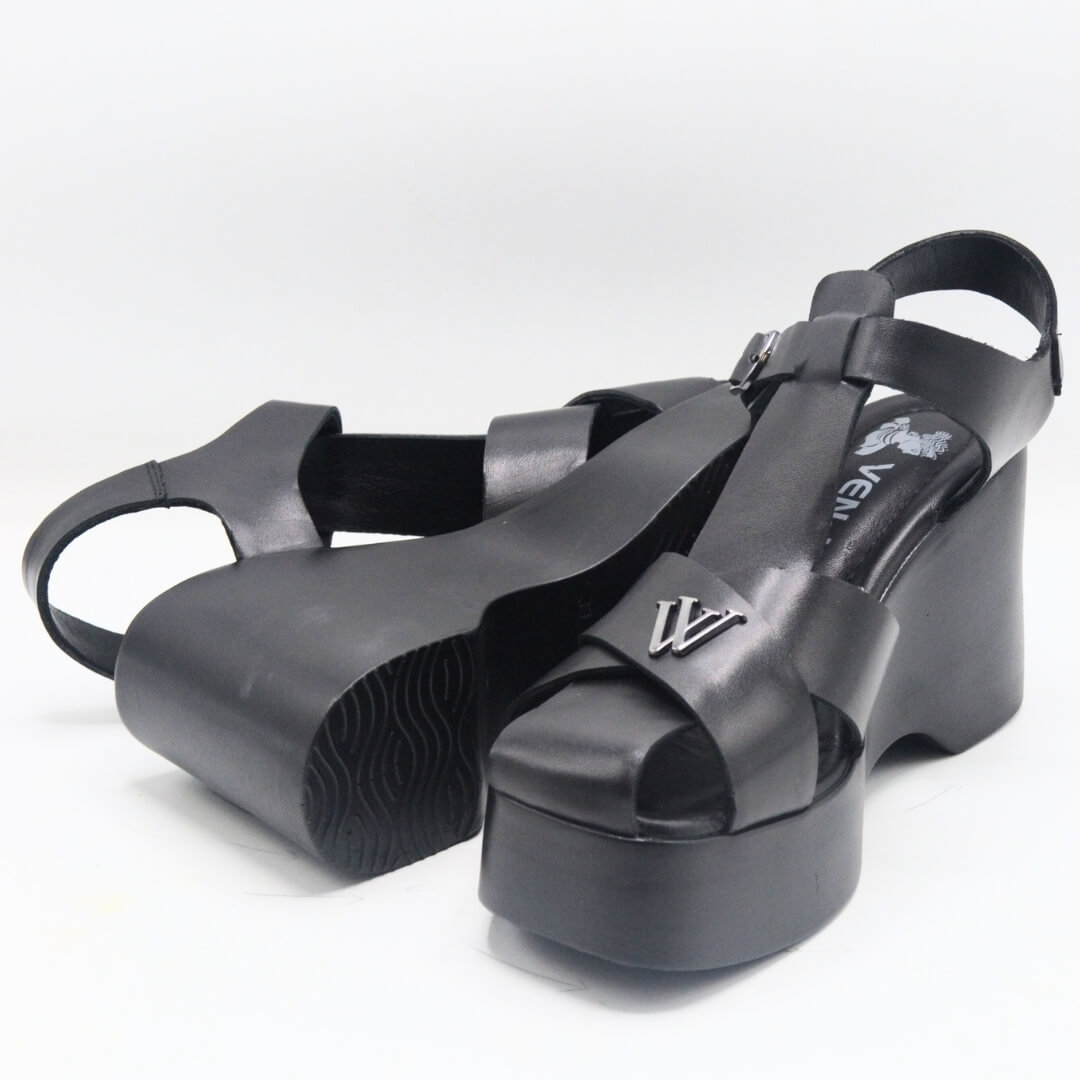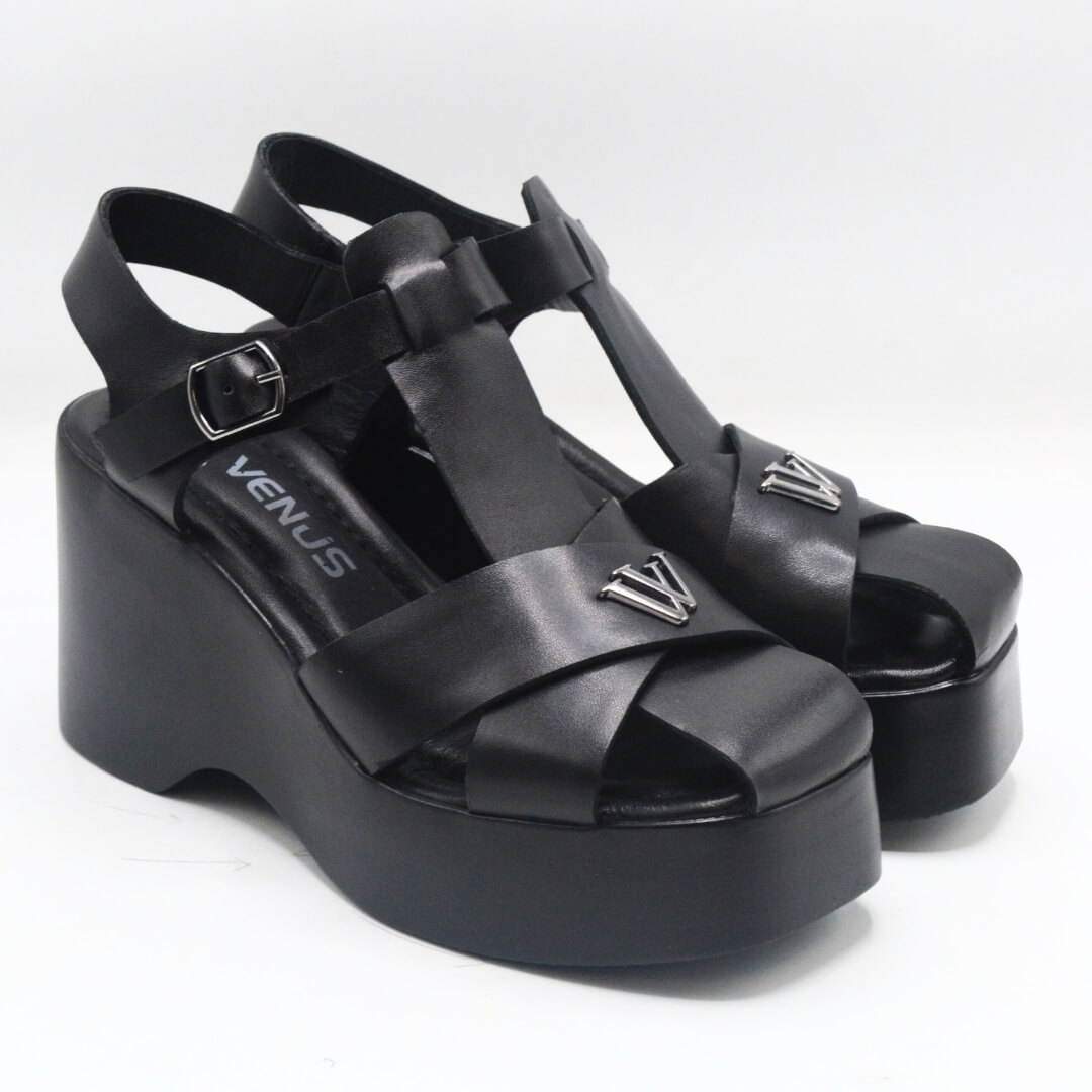 Venüs Deri Kadın Dolgu Topuklu Sandalet Siyah 2311530Y