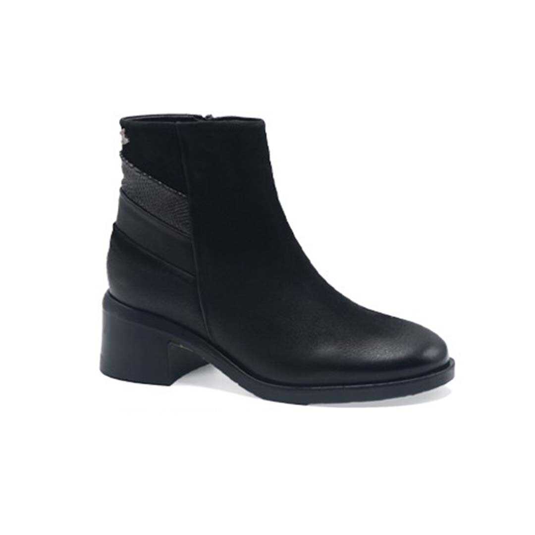 Venüs Deri Kadın Nubuk Topuklu Bot Siyah-Platin Sedef 2551403K