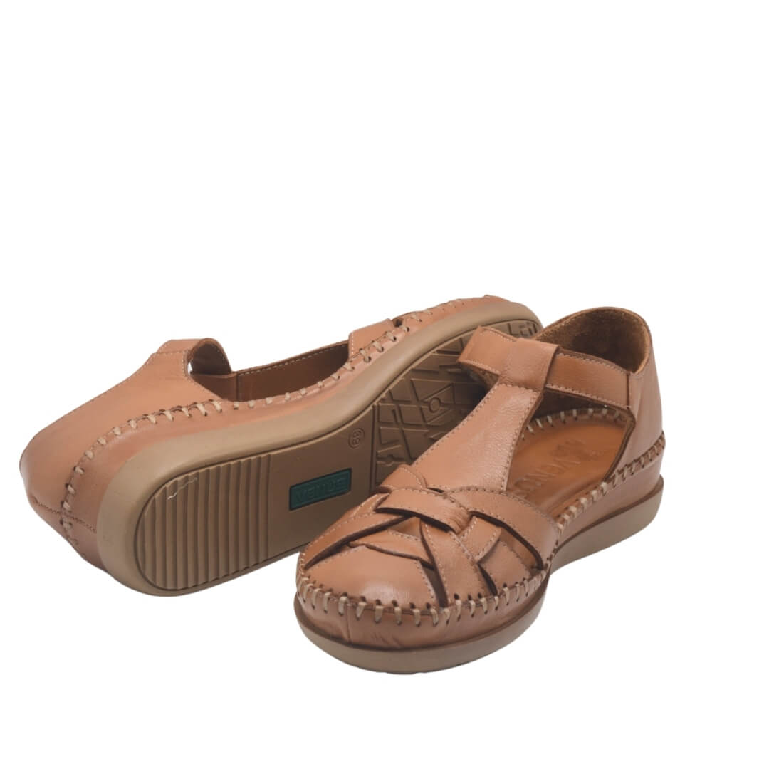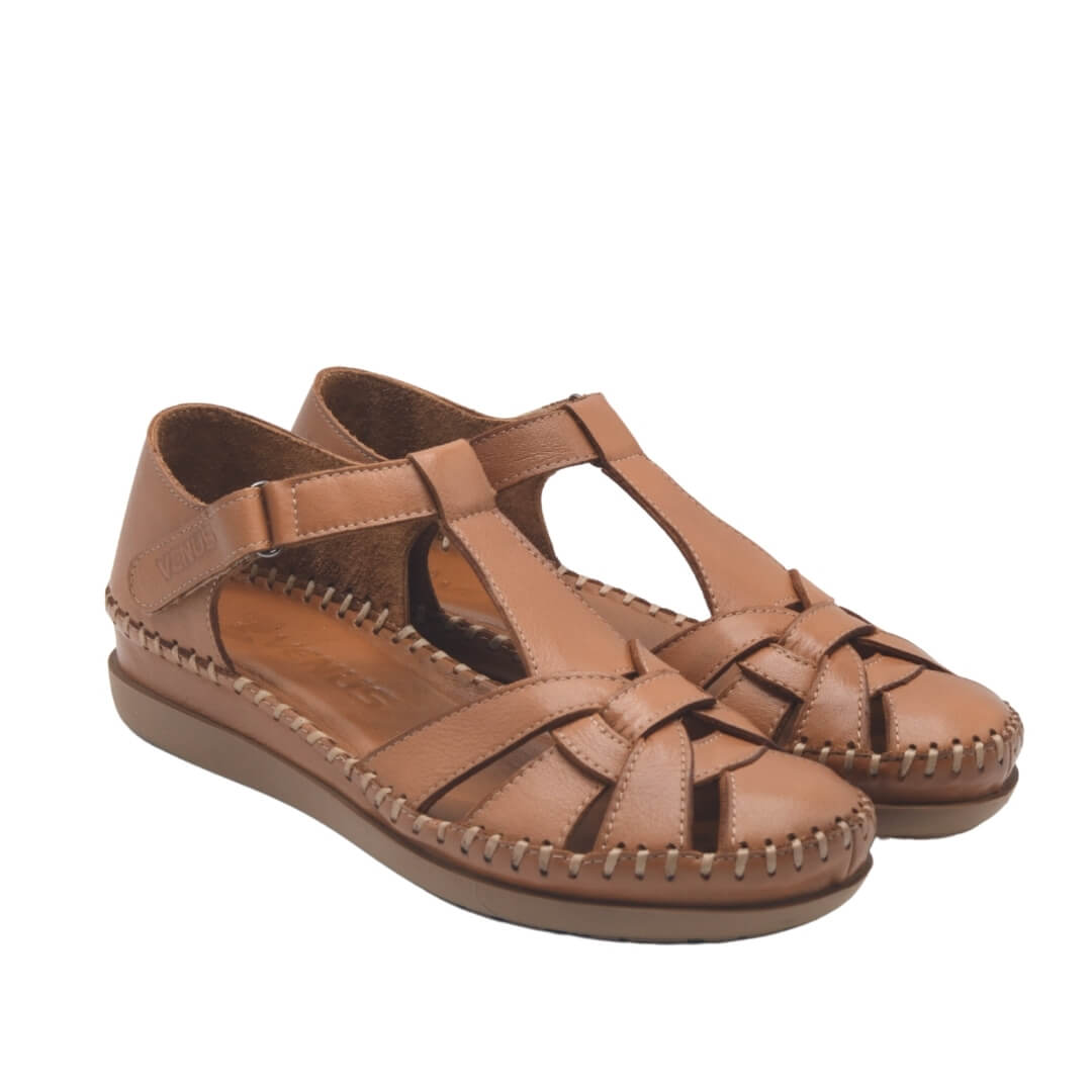 Hakiki deri yapısı, cırtlı bant tasarımı ve ortopedik pedli tabanı ile gün boyu konfor sunan 25033541Y kodlu taba sandalet, bu sezonun favori modellerinden biri!