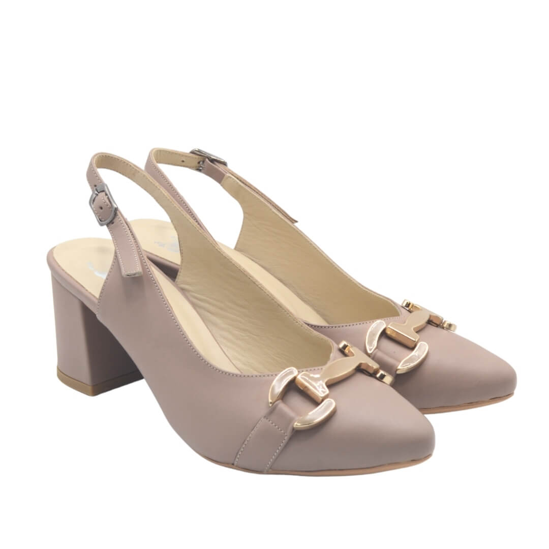 Hakiki deri malzemesiyle üretilmiş vizon tokalı topuklu ayakkabı, klasik ve modern çizgileri bir araya getiriyor.