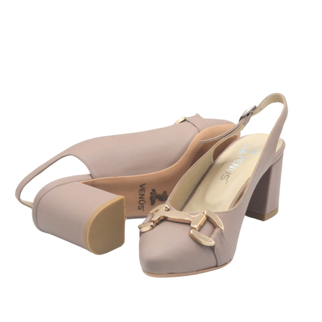 Venüs Deri Kadın Gold Toka Detaylı Topuklu Ayakkabı Vizon 25461074Y